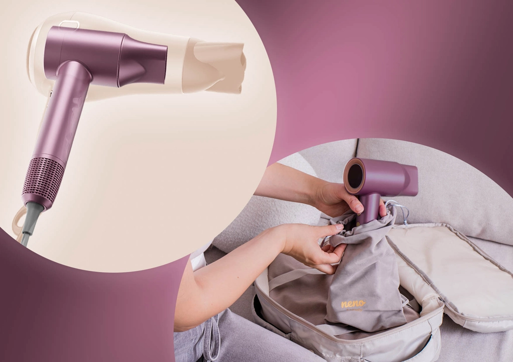 A precíz formázáshoz mágneses koncentráló fúvóka áll rendelkezésre, az eltávolítható szűrőfedél megkönnyíti a tisztítást és meghosszabbítja az élettartamot. A kompakt és könnyű kialakítás otthonra és utazáshoz is ideális – beleértve az elegáns utazótokot. A hajszárító a memóriafunkciónak köszönhetően megjegyzi az utoljára beállított hőmérsékletet is.