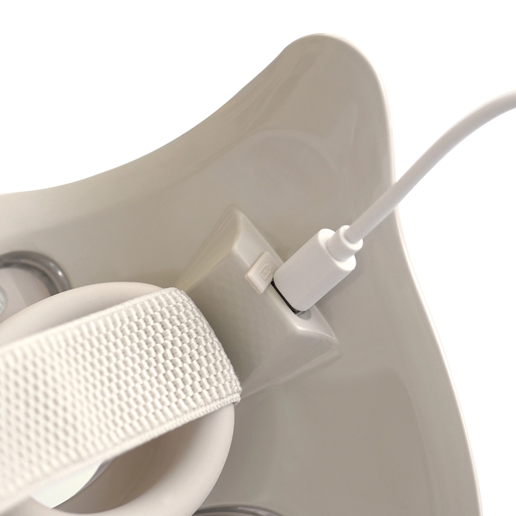 A kezelés után a maszk könnyen tisztítható és a tokba helyezhető. A beépített akkumulátor kényelmesen tölthető USB‑C-n keresztül.