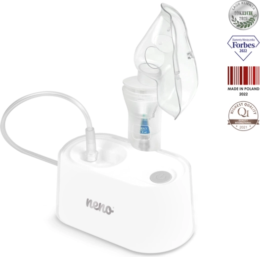Biztosítson mindennapi megkönnyebbülést a légzésben a kompakt Neno Sano kompresszoros inhalátorral. Magas porlasztási hatékonyságot, csendes működést (52 dB), két maszkot gyermekeknek és felnőtteknek, valamint egygombos, egyszerű kezelést kínál. A 150 cm hosszú csőnek, az öt lábú, stabil talpnak és a nagy, 8 ml-es gyógyszertartálynak köszönhetően ideális otthoni inhaláláshoz megfázás, nátha, arcüreggyulladás és asztma esetén.