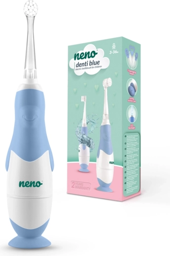 A Neno Denti kíméletes elektromos fogkefe a legkisebbek számára, már 3 hónapos kortól ajánlott. A pingvin alakú ergonomikus test motiválja a gyerekeket a rendszeres fogmosásra, míg a kompakt, puha sörtéjű fej gyengéden ápolja a fogacskákat és az érzékeny ínyt. Az integrált LED fény átláthatóbbá teszi a tisztítást, és szórakoztatóvá varázsolja a napi rutint.