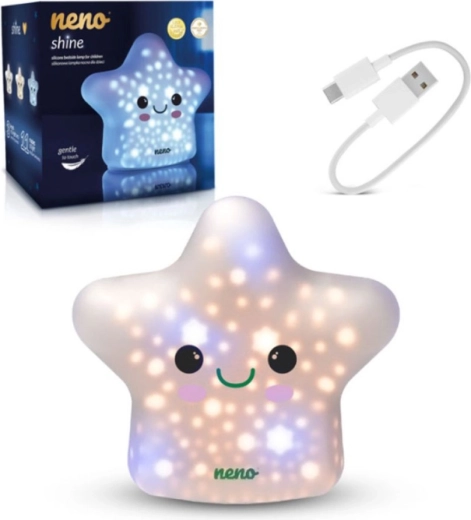 Tedd otthonosabbá a gyerekszobát a Neno Shine aranyos, csillag alakú lámpájával, amely bársonyos tapintású, puha szilikonból készült. 11 fényüzemmódot, 3 fényerőszintet és egygombos, egyszerű vezérlést kínál. A USB‑C töltésnek és a könnyű, biztonságos kialakításnak köszönhetően ideális éjszakai etetéshez, elalváshoz, valamint finom éjszakai fénynek 3 éves kortól.