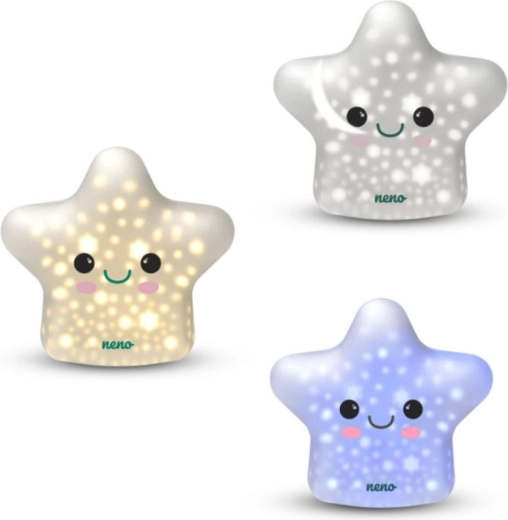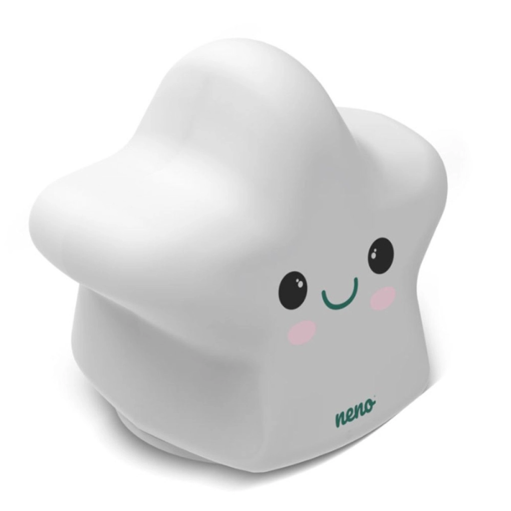 A Neno Shine csillag alakú éjjeli lámpa megnyugtató légkört teremt alváshoz és pihenéshez. A lágy, szórt fény 11 világítási móddal és 3 fényerőszinttel könnyen igazítható minden helyzethez – az éjszakai pelenkázástól az elalvás előtti olvasásig. A kellemes szilikon felület selymes tapintású és biztonságos a gyerekszobában.