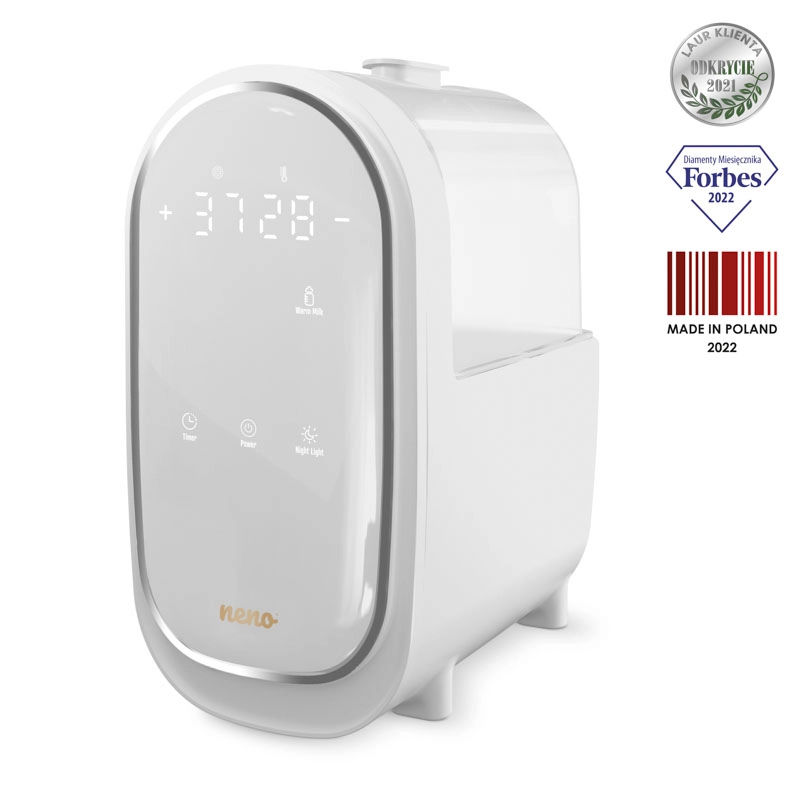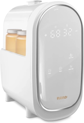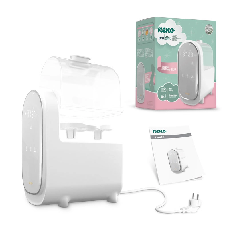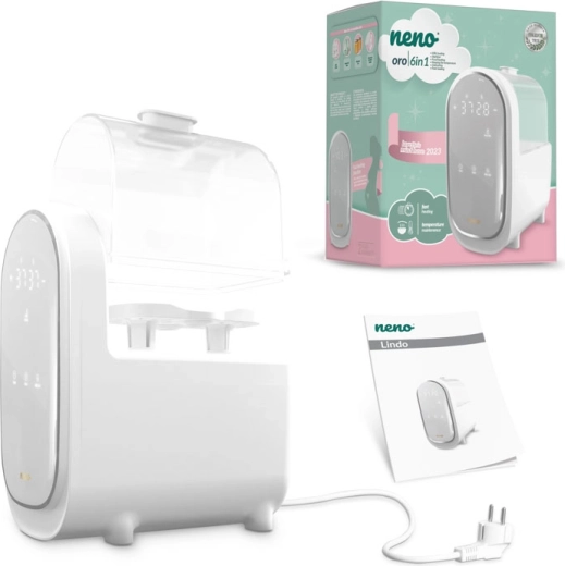 A kompakt és elegáns Neno Lindo 6 az 1-ben multifunkciós készülék a babaétel és higiénia gondozásához. Kínál cumisüvegek, cumik és rágókák sterilizálását, precíz tej- és ételmelegítést, kiolvasztást és hőmérséklet-tartást. A érintőpanelnek, LED háttérvilágításnak és intelligens üzemmódoknak köszönhetően a kezelés gyors, halk és biztonságos éjszaka is. Karcsú méretei helyet spórolnak a pulton, és a fiókba is befér.
