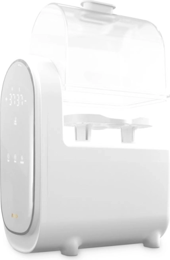Az intuitív érintőkijelző letisztult ikonokkal megkönnyíti a programválasztást, míg a beépített éjszakai fény kényelmes használatot biztosít sötétben is. A kompakt felépítésnek, a könnyen szétszedhető alkatrészeknek és a kör alakú nyílásokkal ellátott belső kosárnak köszönhetően a cumisüvegek és tartozékok kezelése biztonságos és áttekinthető.