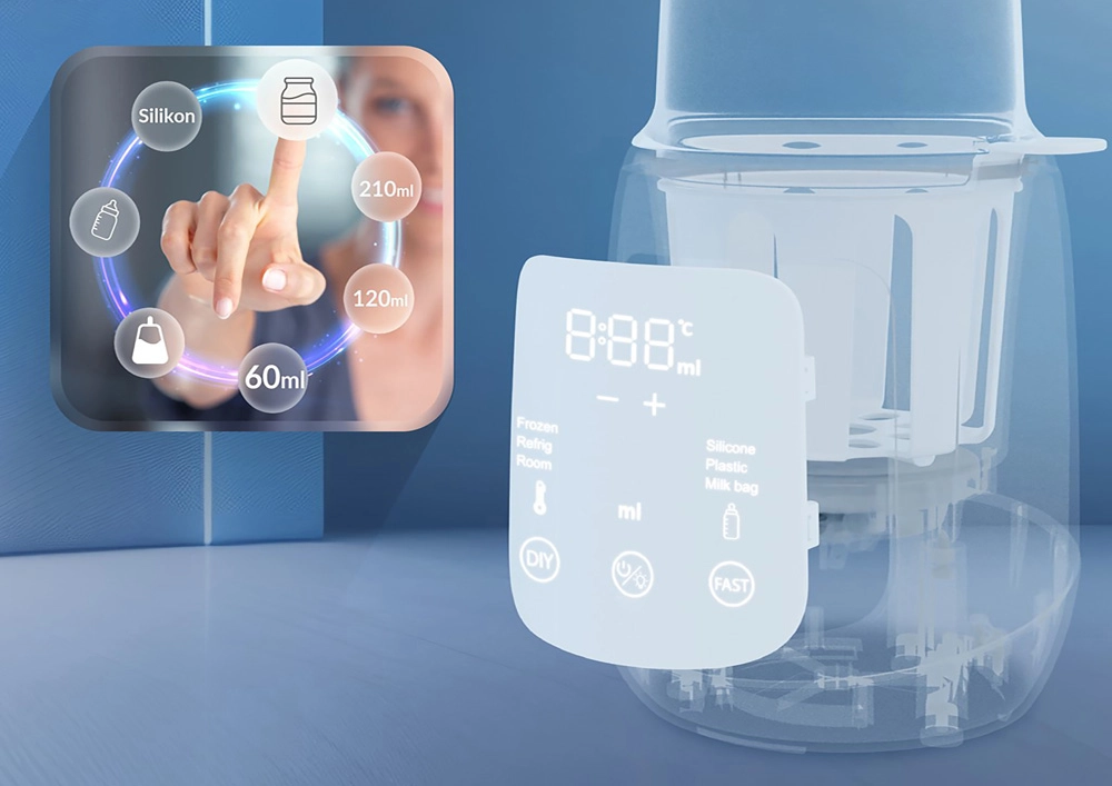Az okos Smart Pro mód automatikusan beállítja az optimális időt és hőmérsékletet az edény típusától (műanyag, szilikon, tejtasak), a térfogattól és a kiindulási hőmérséklettől függően. A vezérlés maximálisan áttekinthető az érintéses ikonoknak és a jól látható kijelzőnek köszönhetően. A beépített LED lámpa megkönnyíti az éjszakai kezelést a helyiség teljes kivilágítása nélkül, míg a gyors üzemmód pillanatok alatt meleg vizet biztosít a tápszerhez vagy a kész bébiételhez.