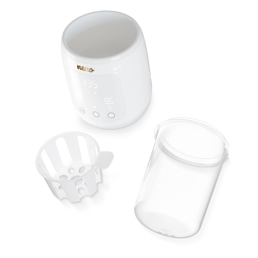 A Neno Tocco biztonságos és gyors módot kínál az anyatej és a bébiételek ideális hőmérsékletre történő előkészítéséhez. A 6 az 1-ben funkciók lefedik a mindennapi igényeket – a kíméletes cumisüveg- és cumisterilizálástól a tejtasakok biztonságos kiolvasztásán át a pontos hőtartásig, amikor eljön az etetés ideje. A kompakt méretek és az univerzális kompatibilitás (akár Ø 77 mm-ig) remek választássá teszik kisebb konyhákba és utazáshoz is.