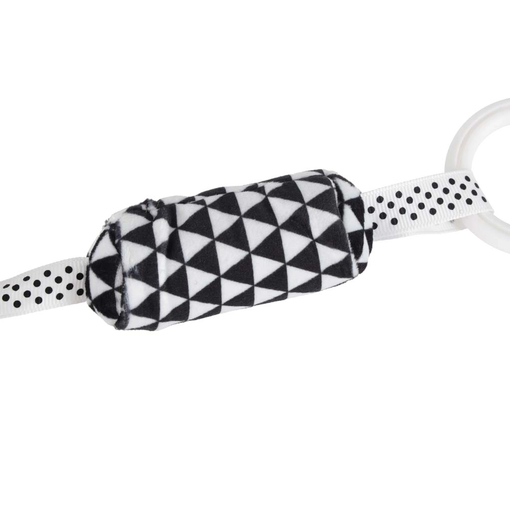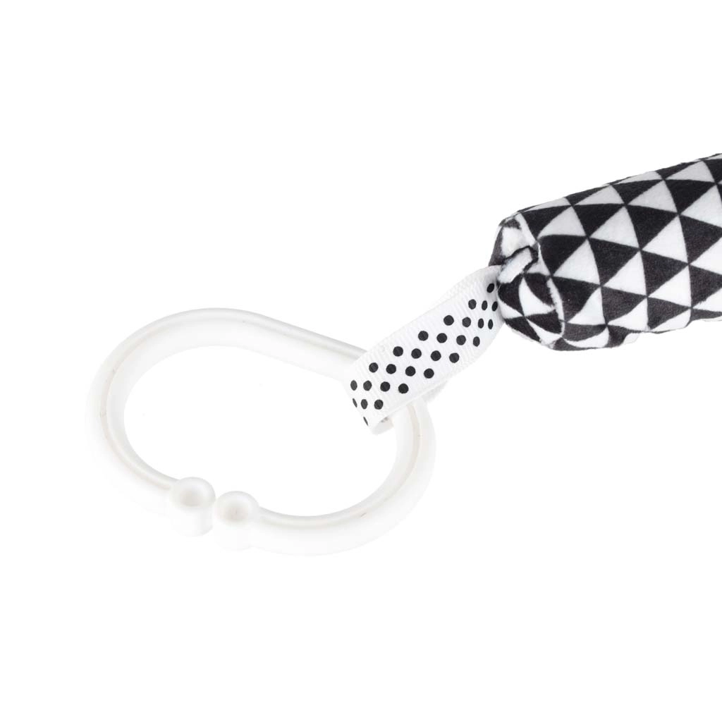 A univerzális gyűrű/klip segítségével a játék könnyen rögzíthető a babakocsira, kiságyra vagy hordozóra, így a kicsi kedvenc érzékszervi játéka mindig kéznél lesz – otthon és útközben is. A csörgő és susogó részletek serkentik a hallási stimulációt, míg a különböző textúrák támogatják a tapintást és fejlesztik a fogást.