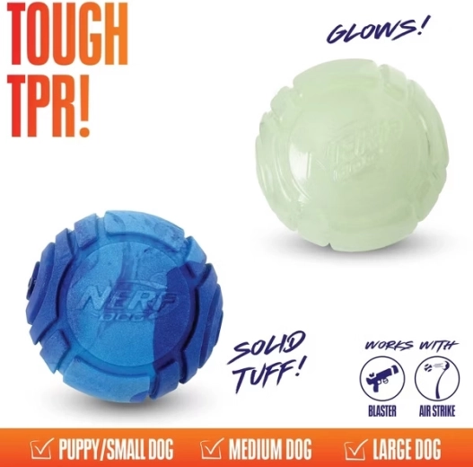 Kompakt, 6,5 cm-es átmérőjüknek köszönhetően a labdák a legtöbb, futást és elkapást kedvelő kutyának megfelelnek. A textúrált felület segíti a jobb szájfogást és a könnyebb pattogást. Az anyag kültéri és beltéri, ismételt használatra készült – a kerti dobálástól a gyors edzésmenetekig.
