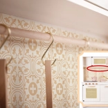 A rattan betétes sütőajtó, a felső szekrény/mikrohullámú sütő és az akasztós sín kampókkal segítenek a gyerekeknek játék közben rendet és rendszert tanulni.