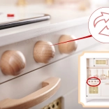 A kivehető főzőlappanel fény- és hangeffektekkel hűen utánozza a valódi főzést. A kétoldalas hátlap lehetővé teszi a konyha megjelenésének megváltoztatását (sima krém vs. mintás tapéta), így könnyen összehangolható a boho, skandináv vagy rusztikus stílusú gyerekszobával. A konyha emellett bőséges tárolóhelyet kínál játékoknak és kiegészítőknek.