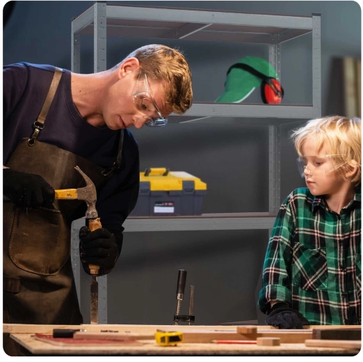 Minden egyes MDF polc egyenletes terhelés mellett akár 125 kg-ot is elbír. Ideális szerszámokhoz, tárolódobozokhoz és anyagokhoz a garázsban vagy a műhelyben.