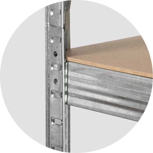 Öt masszív MDF polc középső merevítéssel polconként akár 175 kg-ot bír el – összesen akár 875 kg-ot. Ideális szerszámokhoz, készletekhez és nehezebb tárolódobozokhoz garázsban vagy műhelyben.