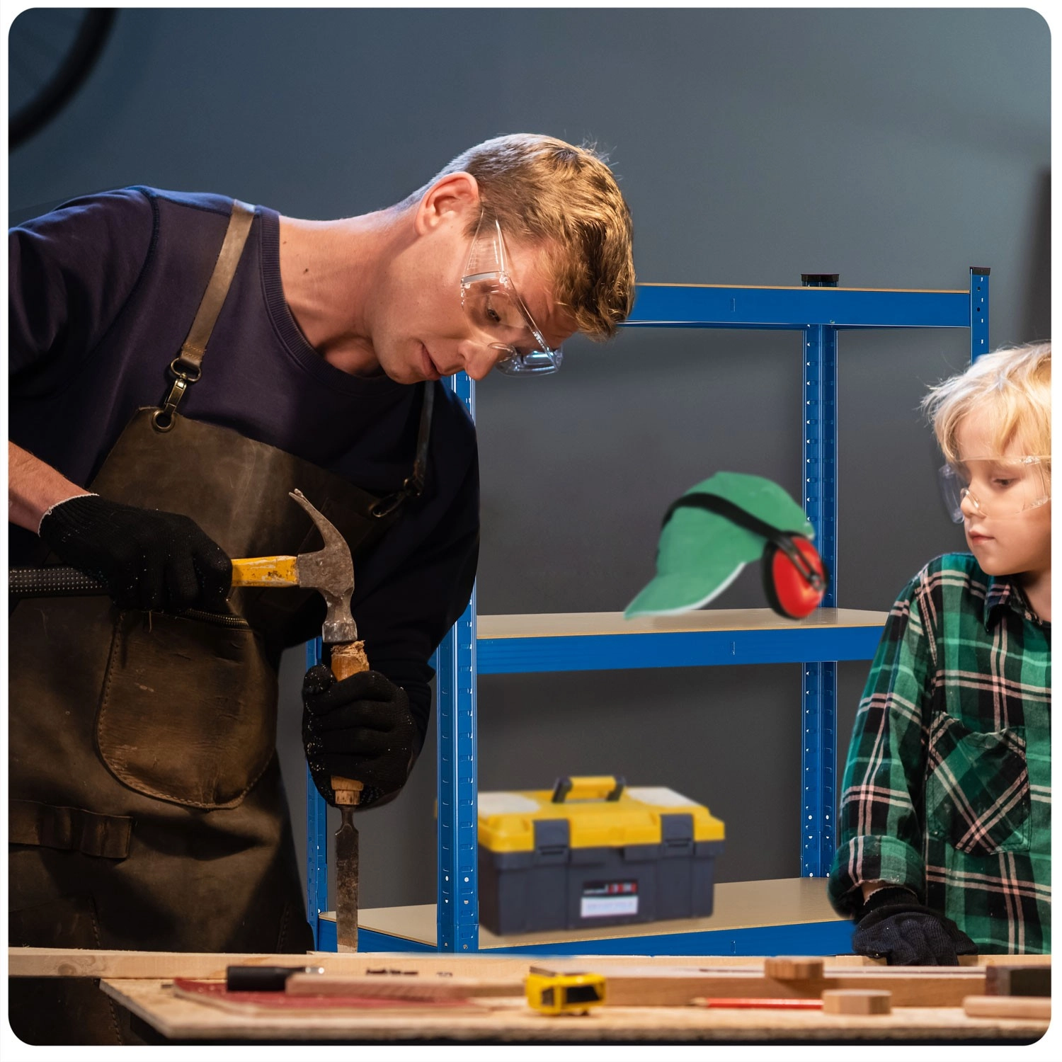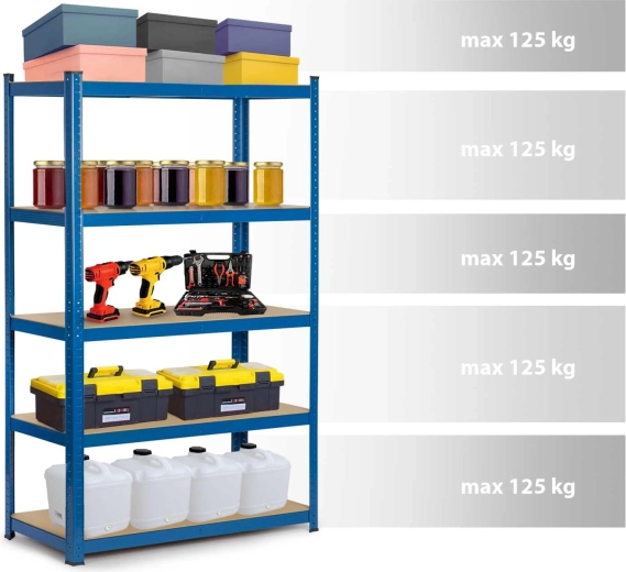 Tartós acélszerkezet galvanizált profilokkal és 5 masszív MDF polccal, amely bírja a megterhelést professzionális és otthoni környezetben egyaránt. Minden polc akár 125 kg-ot elbír, így bátran tárolhat rajta szerszámokat, dobozokat és készleteket. A középső merevítéseknek köszönhetően a tárolás stabil és egyenletes.