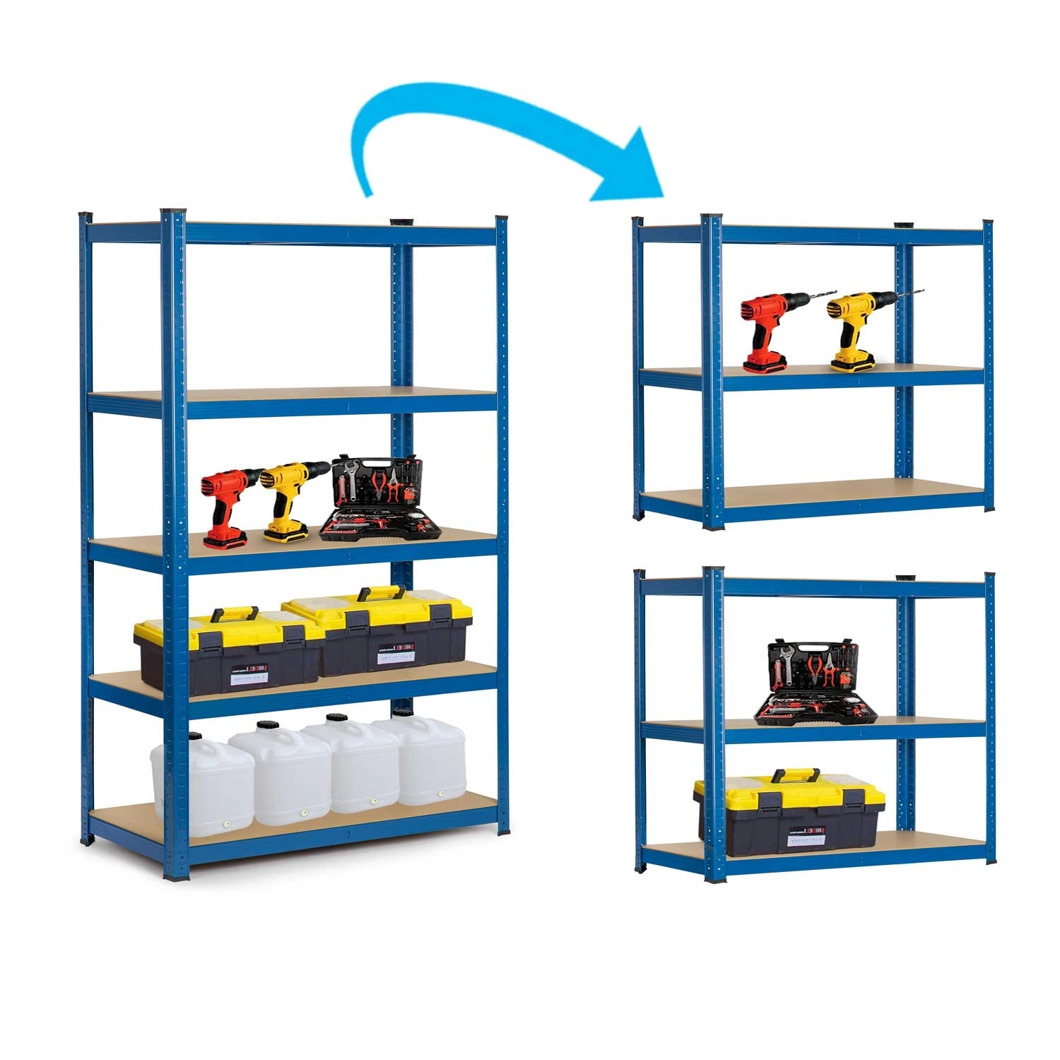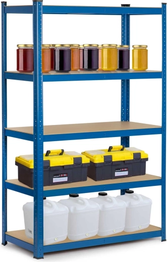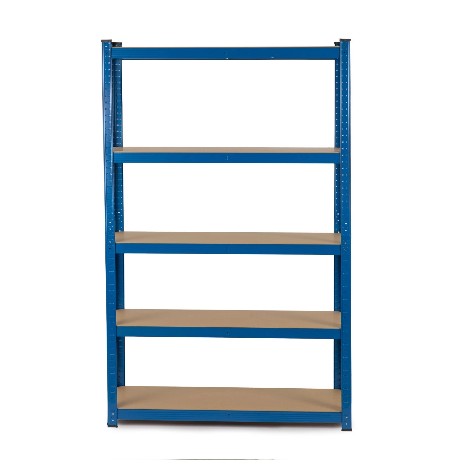 Acél váz középső merevítésekkel és 5 MDF polccal, összesen akár 625 kg teherbírással. Stabil megoldás dobozokhoz, szerszámokhoz és készletekhez.