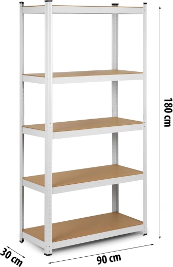 Humberg fém polcrendszer 180 × 90 × 30 cm, fehér, 5 polc