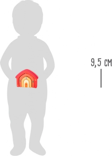 Ez a motorikus játék házikó formában négy íves elemből áll, amelyeket egymásba lehet illeszteni vagy egymásra lehet építeni. Az egyszerű design, a lekerekített élek és a fa meleg árnyalatai a gyerekszoba stílusos kiegészítőjévé és a készségek fejlesztésének remek eszközévé teszik.