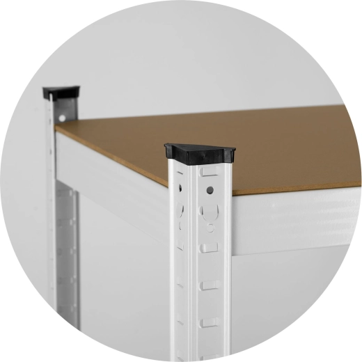 A fehér színű univerzális HUMBerg fém polcrendszer 5 állítható MDF polccal, akár 875 kg teherbírással és csavar nélküli szerelési rendszerrel kínál gyors összeszerelést. A két alacsonyabb polcra osztható kialakításnak vagy munkapadként való használatnak köszönhetően ideális garázsba, pincébe, irattárba vagy műhelybe. A védő műanyag lábvégződések óvják a padlót, a lekerekített élek pedig növelik a biztonságot.