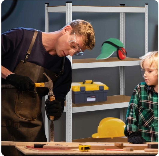 Az okos kialakítás lehetővé teszi a polc két alacsonyabb egységre bontását, illetve munkapadként való használatát. A gyors, csavar nélküli bepattintható szerelési rendszer időt takarít meg, a védő műanyag végzárók növelik a stabilitást és védik a padlót, míg a lekerekített élek biztonságos használatot garantálnak.