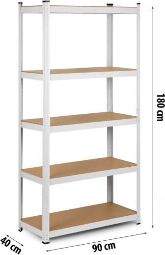 A HUMBerg fém raktárpolc 180 × 90 × 40 cm megbízható megoldás a szerszámok, készletek és iratok áttekinthető és biztonságos tárolására. Öt masszív, merevített MDF polc polconként akár 175 kg-ot (összesen 875 kg) bír el, a 40 mm-enként állítható magasság pedig könnyű alkalmazkodást biztosít a tárolt tárgyakhoz.