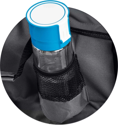 A porszórt acél váz akár 90 kg-ot is elbír. A strapabíró huzat gyorsan szárad és könnyen tisztítható, a két zseb elfér egy palack vagy termosz számára.