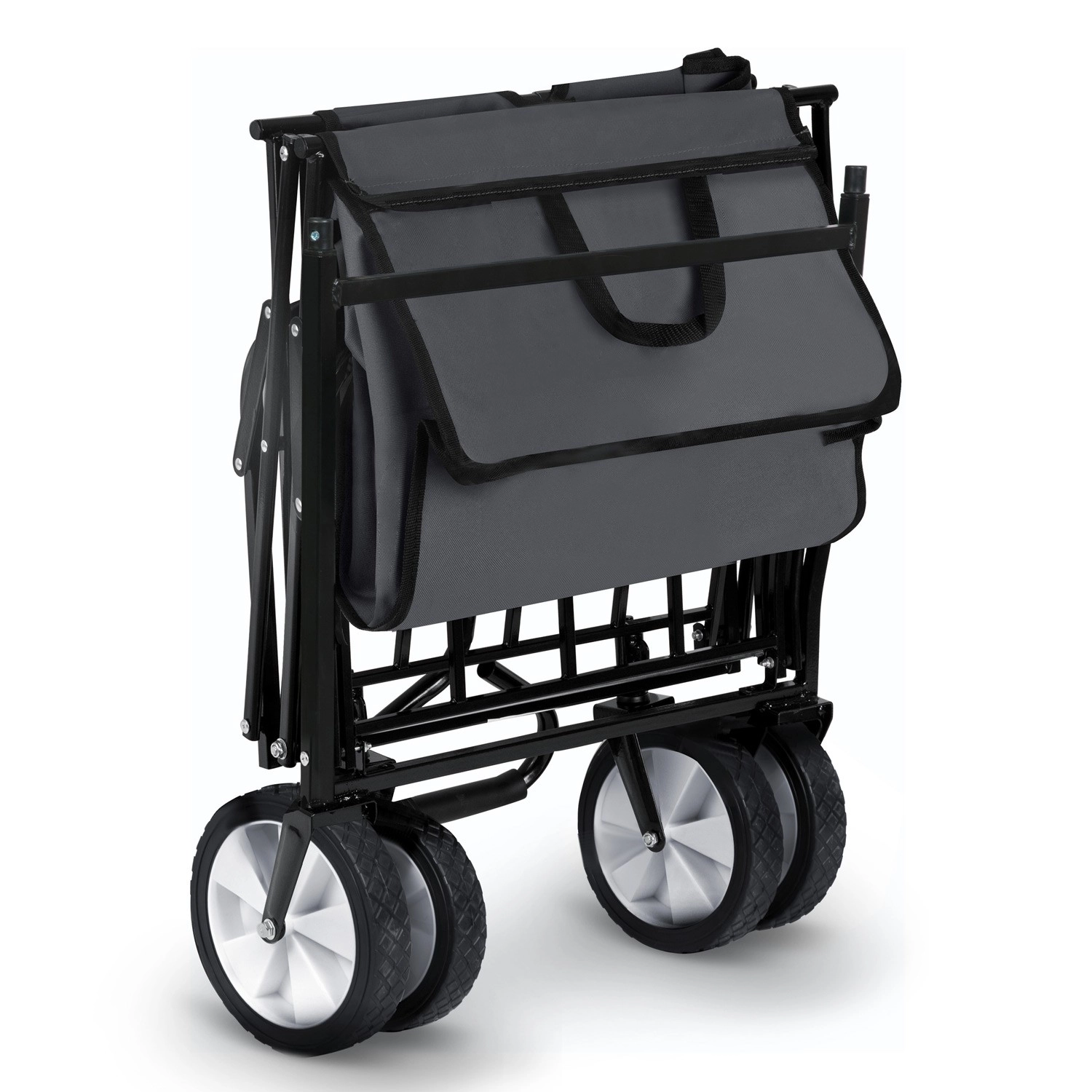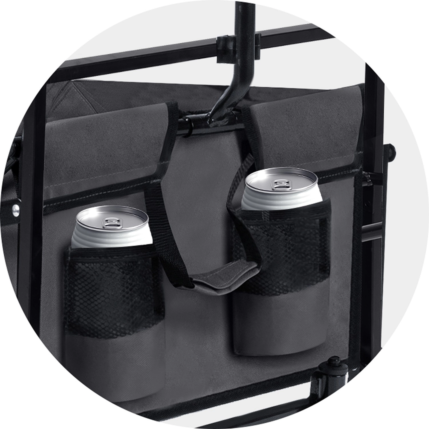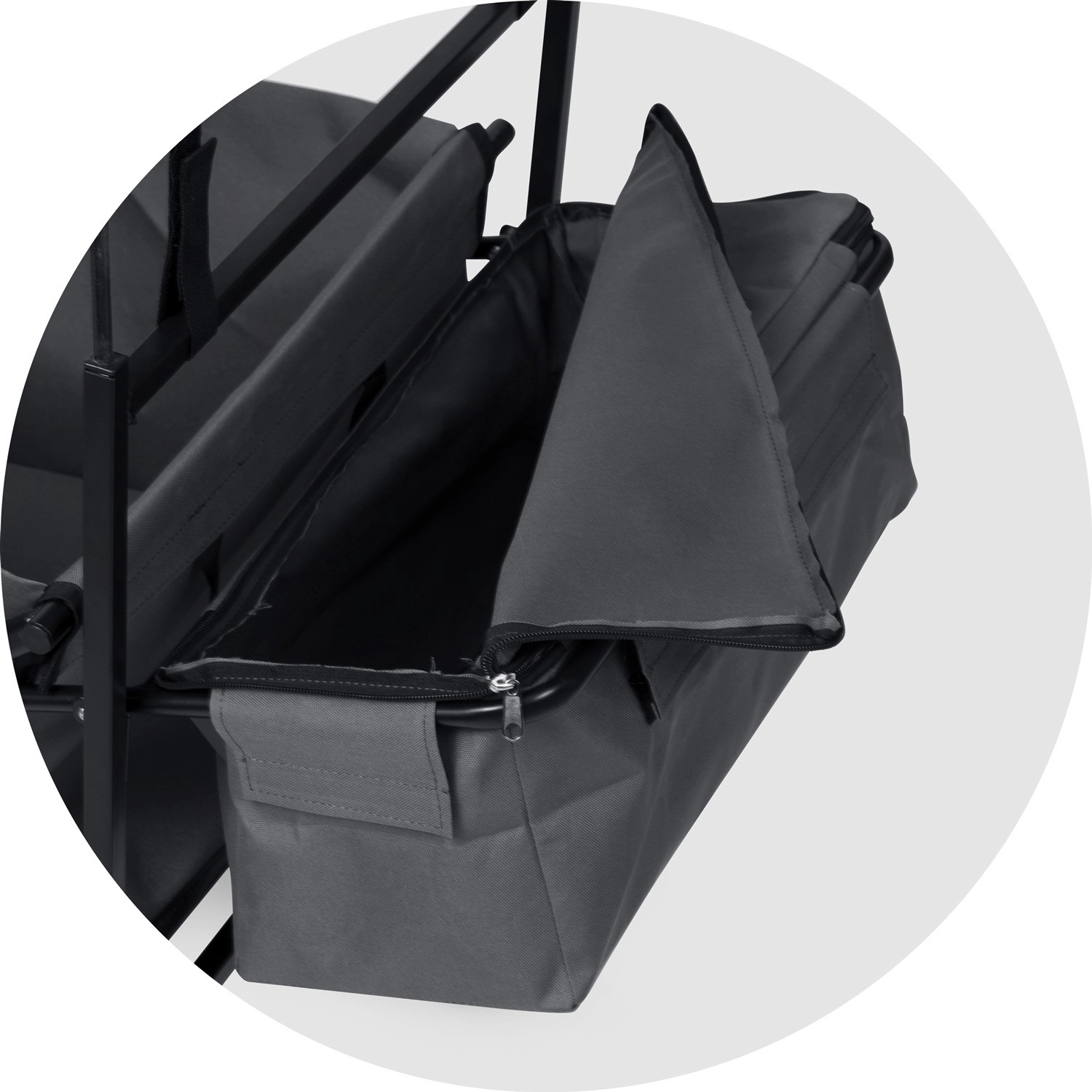 A praktikus, 80 l űrtartalmú és 90 kg teherbírású HUMBERG összecsukható kocsi megkönnyíti a rakomány szállítását a kertben, kirándulásokon és a strandon. Állítható tetővel rendelkezik a nap és az eső ellen, tartós acél vázzal porfestett felülettel, kényelmes teleszkópos fogantyúval csúszásgátló bevonattal, valamint levehető cipzáras kiegészítő zsebbel apróságok számára. Az első forgó kerekek könnyű manőverezést biztosítanak, a szerkezet pedig gyorsan összecsukható kompakt méretre az egyszerű hordozás és tárolás érdekében.