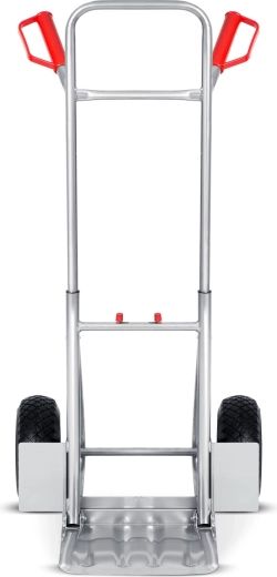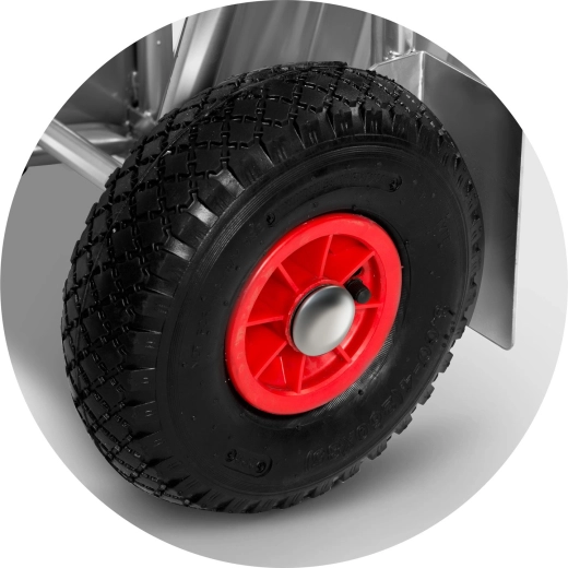 Nagy, szelepes felfújható kerekek fém merevítéssel biztosítják a rakomány sima szállítását küszöbökön, járólapon és durvább felületeken is.