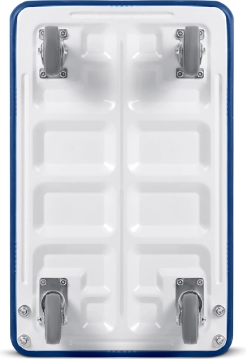 A fogantyú másodpercek alatt egyszerűen lehajtható. A kocsit így laposan elhelyezheti polcon, asztal alatt vagy az autó csomagtartójában – ideális mobil használatra és kis üzemekbe.