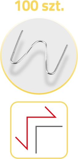 Praktikus 100 db B típusú (széles hullám) 6 mm-es kapcsok készlet műanyagok javításához hegesztő segítségével. A legtöbb műanyaghegesztővel kompatibilis, minőségi, korrózióálló fémből készül a hosszú élettartamért. Ideális gyors és erős javításokhoz lökhárítókon, fényszóróburkolatokon, műszerfalakon és háztartási készülékek műanyag alkatrészein – gyors, gazdaságos és megbízható megoldás.