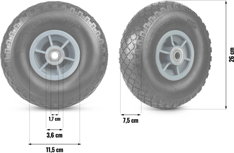 Megbízható pótkereket keres kerti vagy műhelyhasználatra? A Humberg márkájú belsőcsöves kerék a masszív felninek és a minőségi golyóscsapágyaknak köszönhetően nagy tartósságot és egyenletes futást nyújt. Univerzális méretei révén számos kézikocsihoz és talicskához illeszkedik.