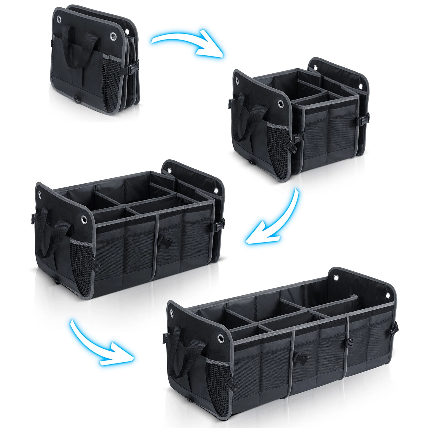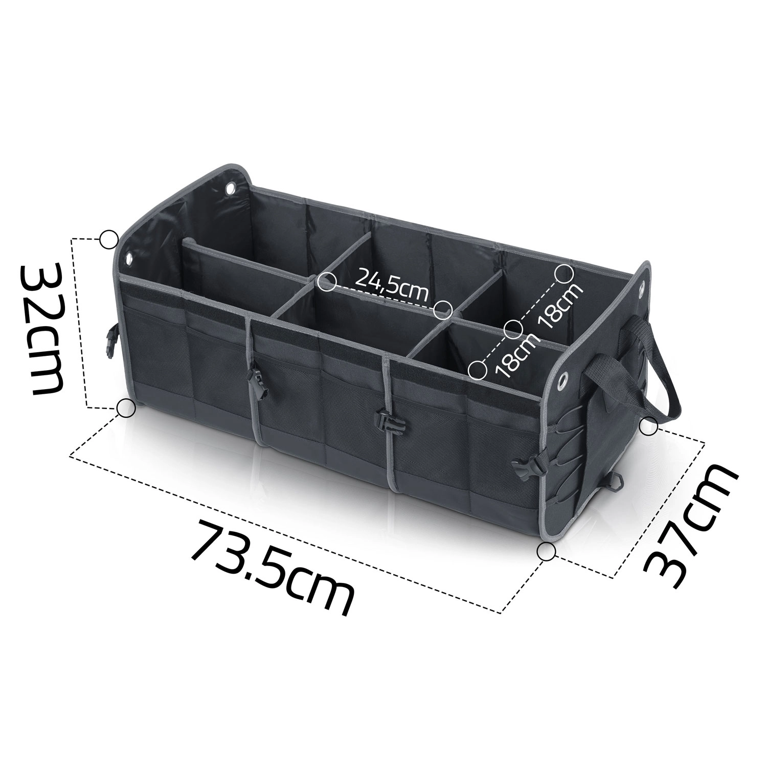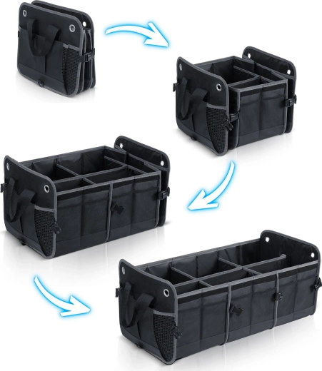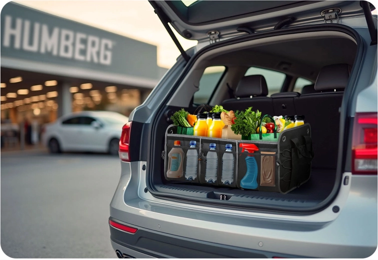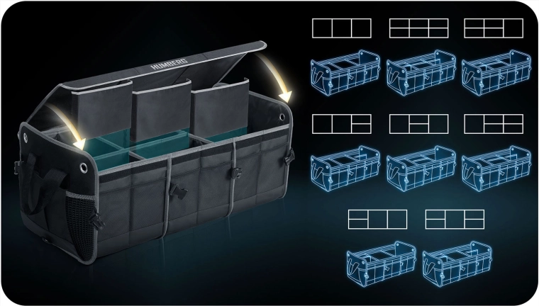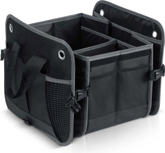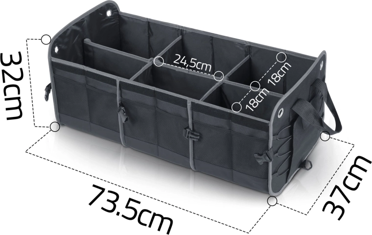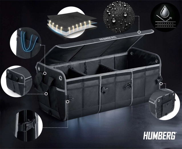 Változtassa a káoszt átláthatósággá. A HUMBERG csomagtartó-rendszerezőt sofőröknek, futároknak és családoknak tervezték – bevásárlás, szerszámok, kábelek és elsősegélycsomag biztonságosan tárolva és könnyen elérhetően. Az összecsukható kialakítás lehetővé teszi egy vagy több rekesz használatát, a merev falak tartják a formát, a levehető fedél pedig védi a tartalmat a portól és a kíváncsi tekintetektől.