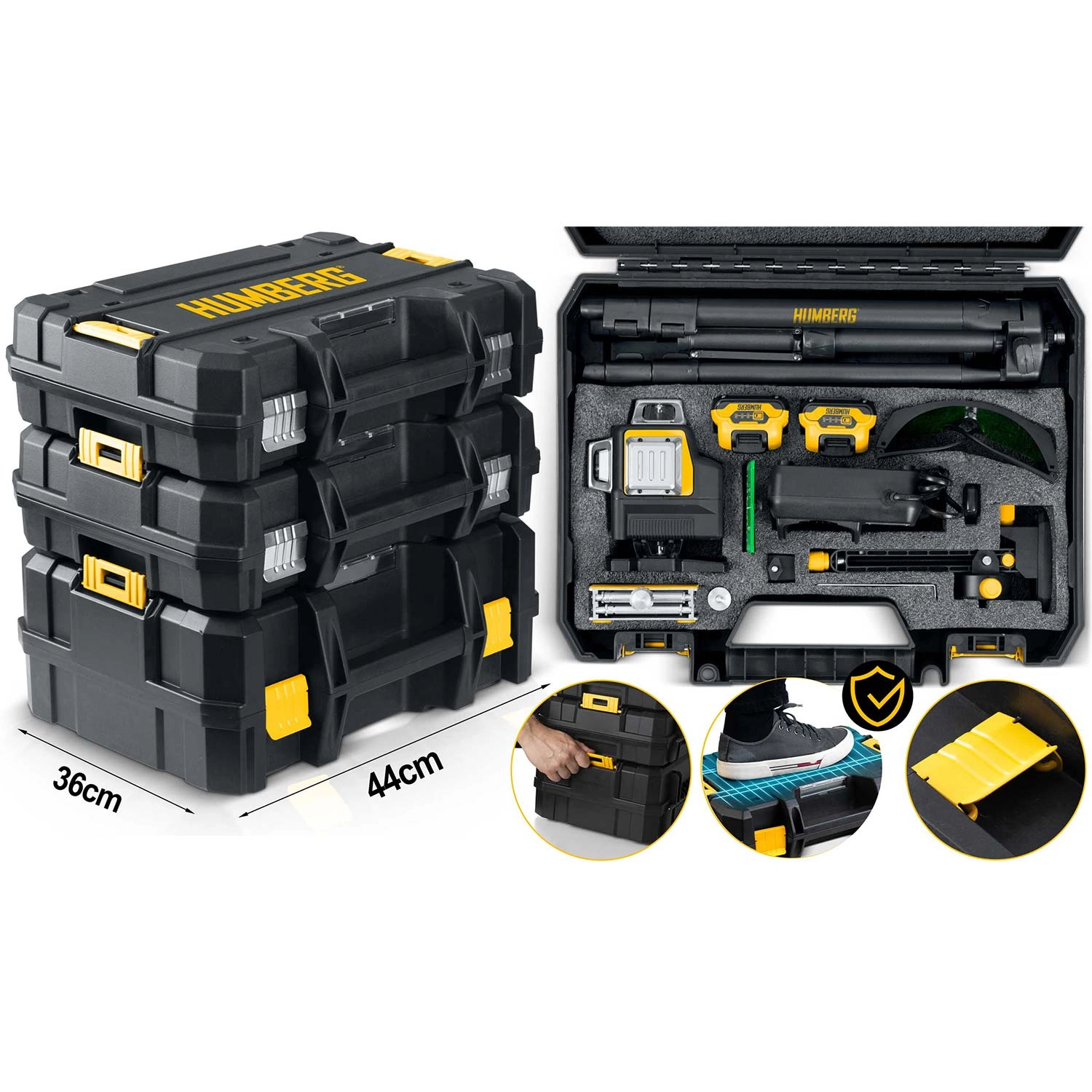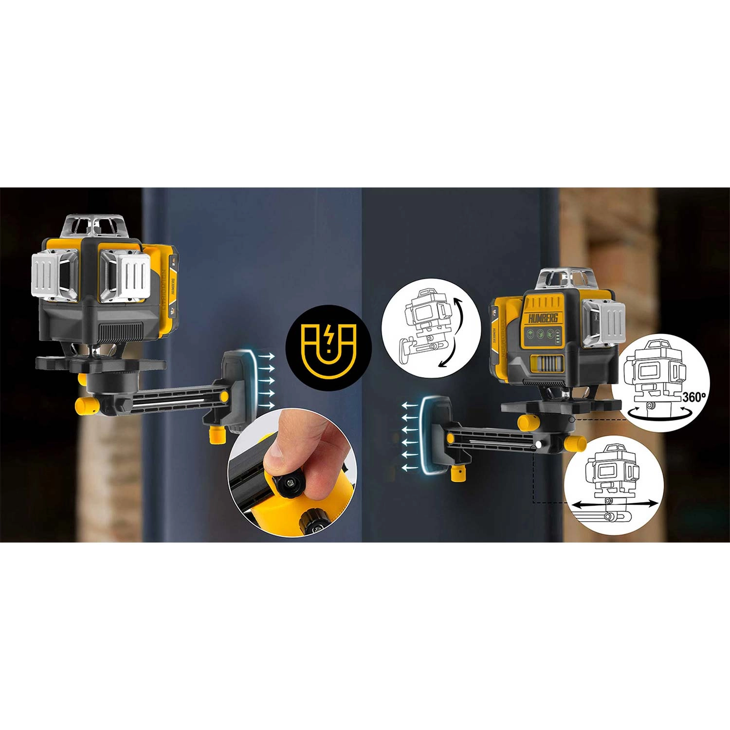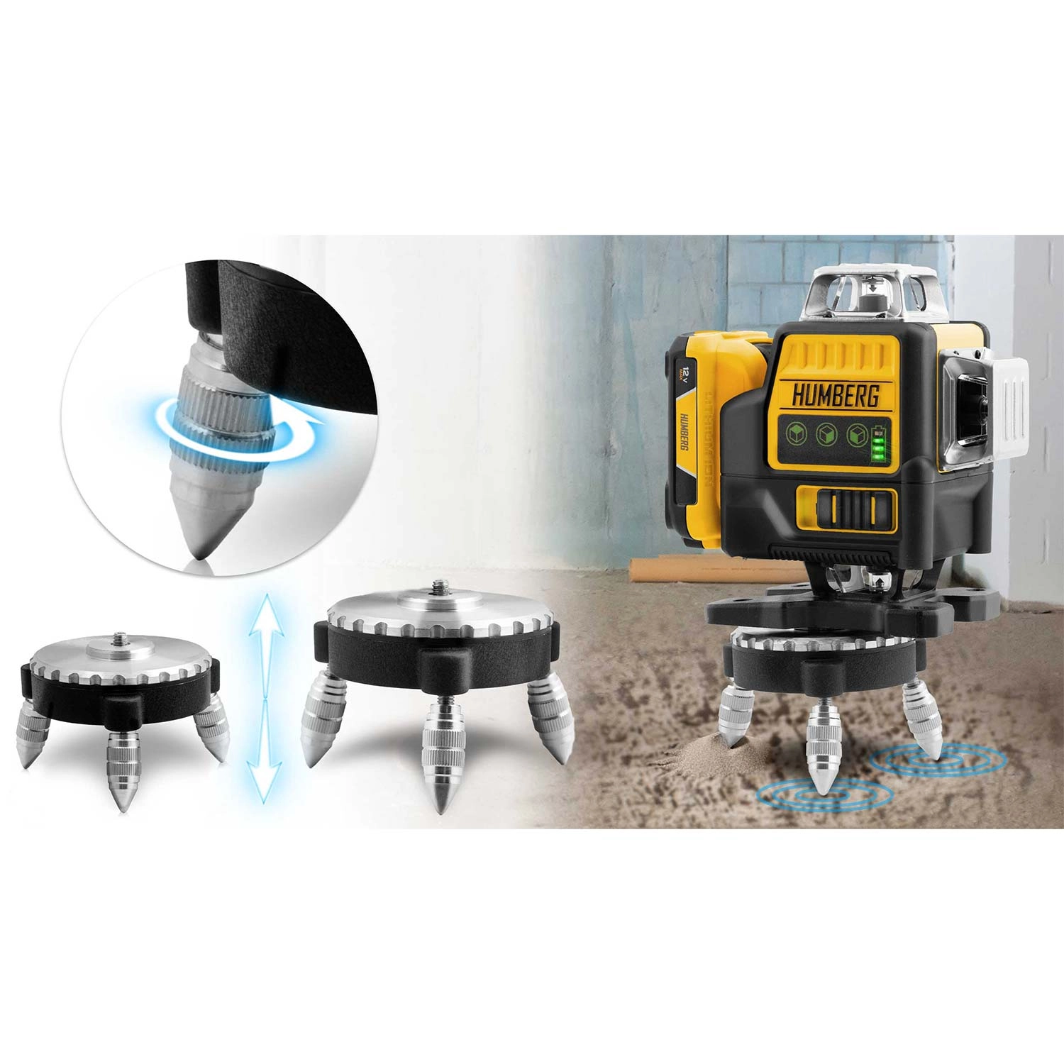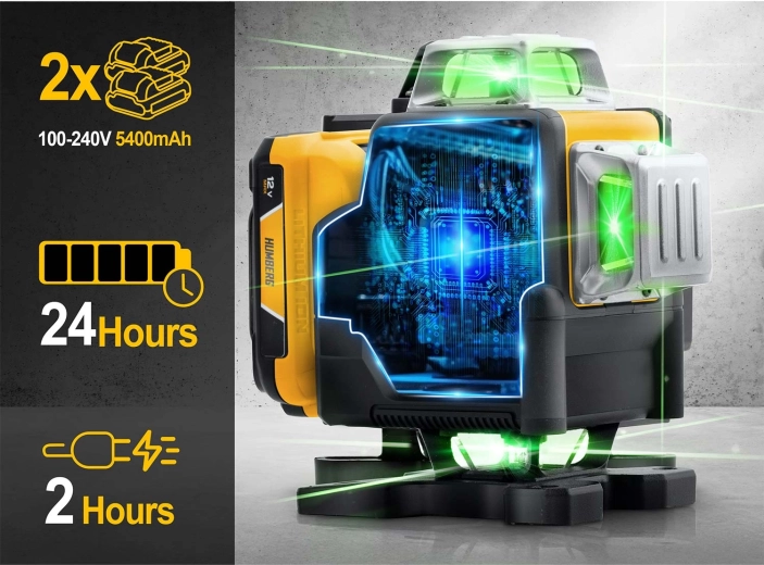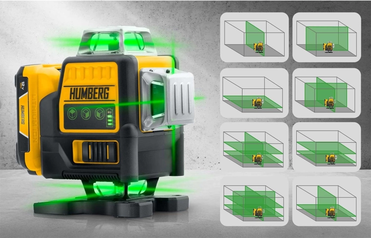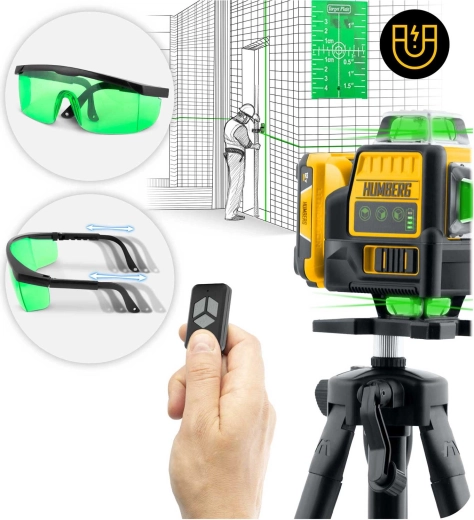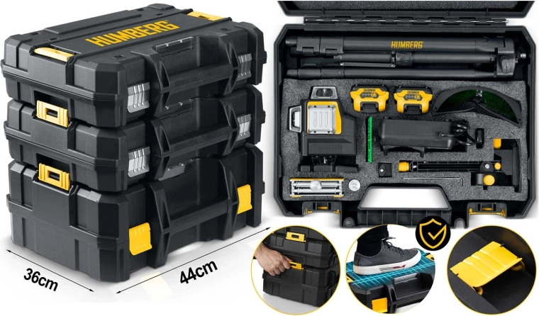 A HUMBERG HM-171 nagy pontosságú 4D lézerszintező igényes profiknak és barkácsolóknak. A zöld sugár (515 nm) rendkívül jól látható még erős fényben is, a 16 vonal pedig gyors és részletes vízszintes és függőleges szintezést tesz lehetővé egy helyiségen belül. Az önszintezésnek köszönhetően hosszas állítgatás nélkül dolgozhat, garantáltan tökéletes síkokkal.