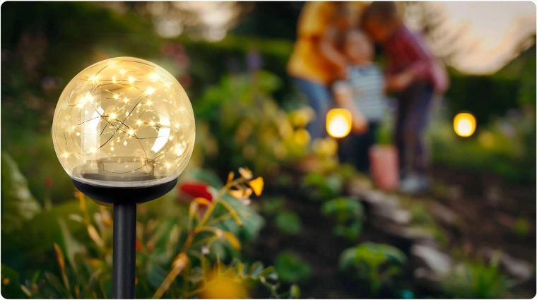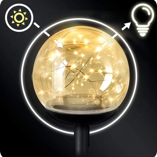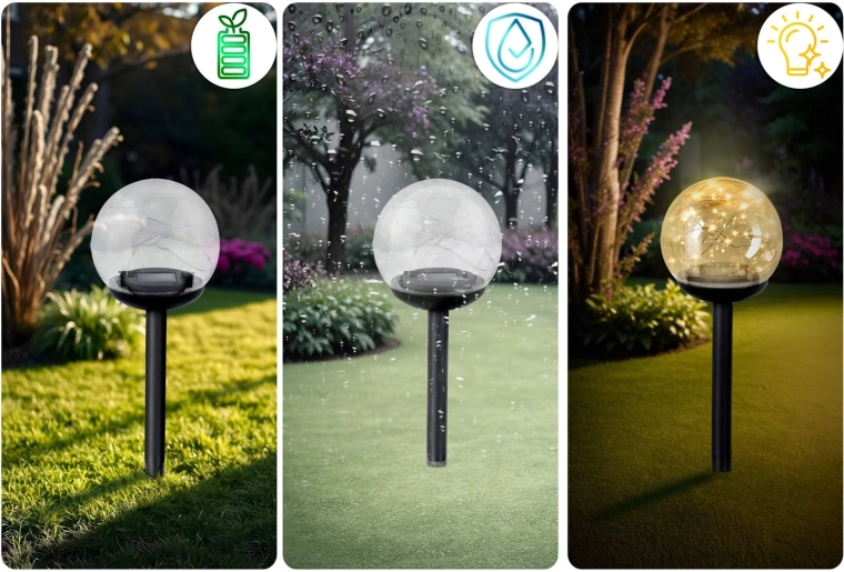 Az ILUMEN napelemes kerti lámpák kellemesen megvilágított oázissá varázsolják kültéri tereit. Az átlátszó gömbök finom LED pontjai egyenletesen szórják a meleg fényt, biztonságosan kiemelve az ösvényeket, bejáratokat és virágágyásokat. A amorf napelemeknek köszönhetően gyengébb fényviszonyok mellett is megbízhatóan töltenek, a beépített 150 mAh Ni-MH akkumulátor pedig energiát biztosít az esti világításhoz.