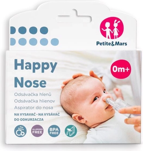 Enyhítse a baba nátháját pillanatok alatt a PETITE & MARS Happy Nose porszívóra csatlakoztatható orrszívóval. Az átgondolt, cső nélküli kialakítás gyors és kíméletes váladékszívást, maximális higiéniát és biztonságos használatot születéstől kínál. Az átlátszó test megkönnyíti a tisztaság ellenőrzését, a speciális kialakítású feltét óvja a nyálkahártyát, a háztartási porszívóval való kompatibilitás pedig állandó és hatékony vákuumot biztosít a könnyű légzésért.