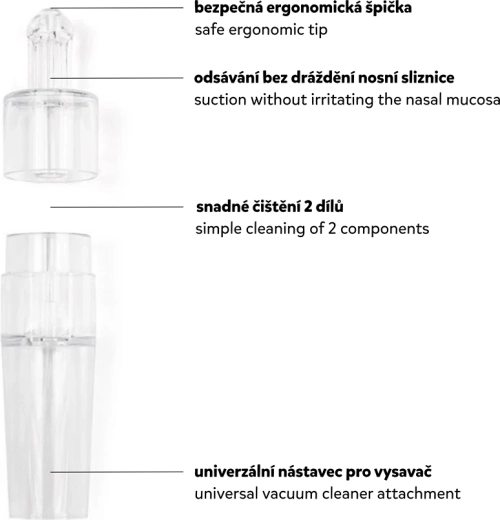 Az átlátszó feltét és a stabil vákuum segít gyorsan felszabadítani az orrjáratokat a nyálkahártya irritálása nélkül – már újszülöttkortól alkalmas.