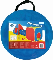 A szórakoztató 3 az 1-ben pop-up sátras szett játszótérré változtatja a szobát vagy a kertet. Tartalmaz egy kocka sátrat, egy alagutat és egy pop-up sátrat, melyek együtt és külön is használhatók. A villámgyors, erőfeszítés nélküli felállítás, a könnyű szerkezet és az egyszerű tárolás kényelmes játékot biztosít otthon és a szabadban is.
