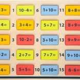 A gyerekek könnyedén gyakorolják az alapvető aritmetikát a jól áttekinthető táblának és a fa elemekre írt, jól olvasható példáknak köszönhetően.