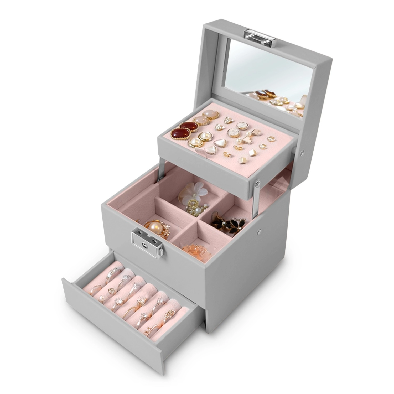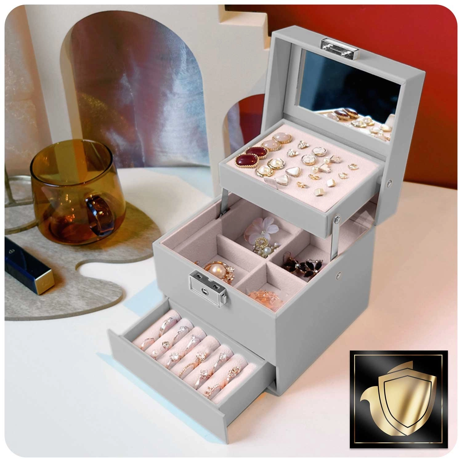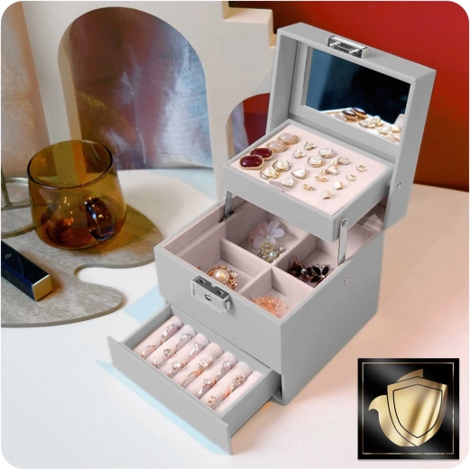 Az integrált tükör és a kulcsos zár védi az ékszereket, és bárhol, bármikor gyors megjelenés-ellenőrzést tesz lehetővé.