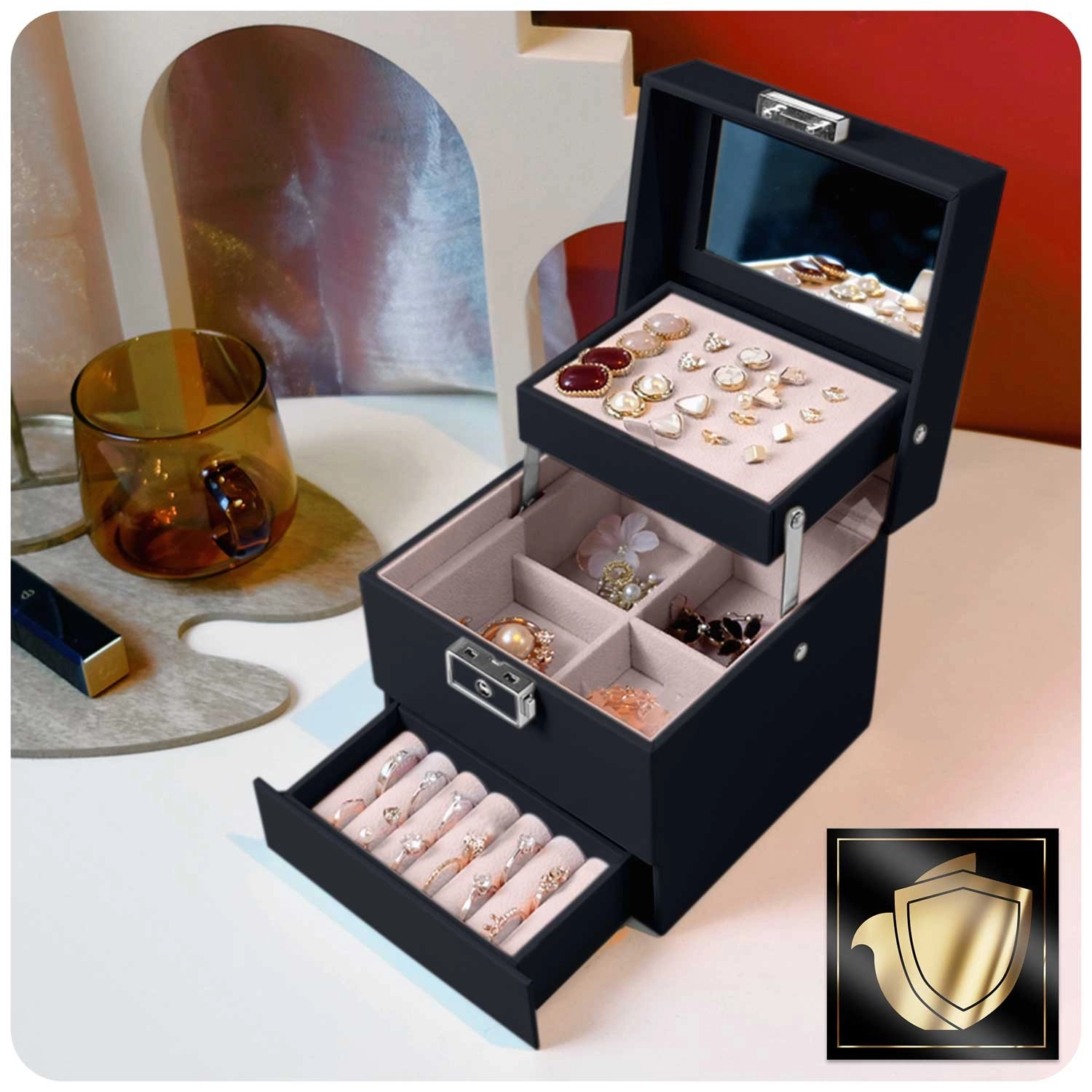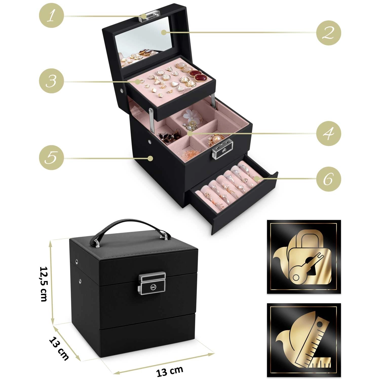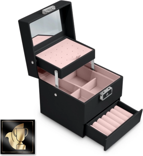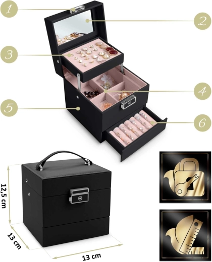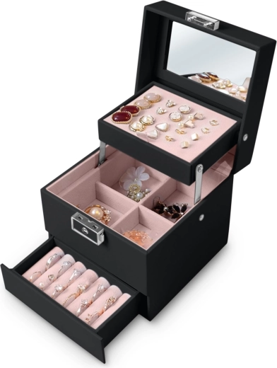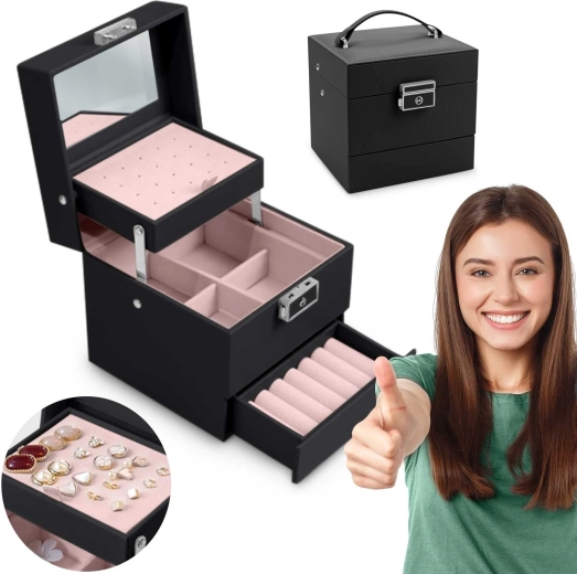 Az ékszerdoboz könnyű, kompakt, és a fogantyúnak köszönhetően utazáshoz is ideális. Modern megjelenése és precíz részletei remek ajándékká teszik lányoknak és felnőtt nőknek – univerzális segítőtárs a tökéletes ékszerrendezéshez.