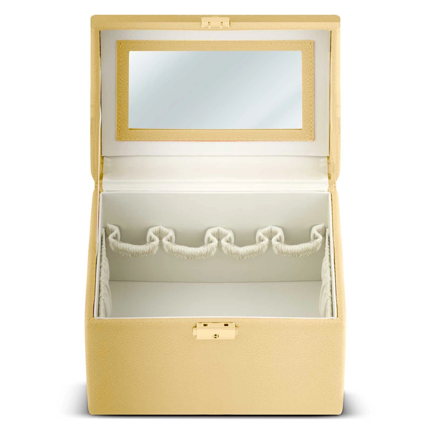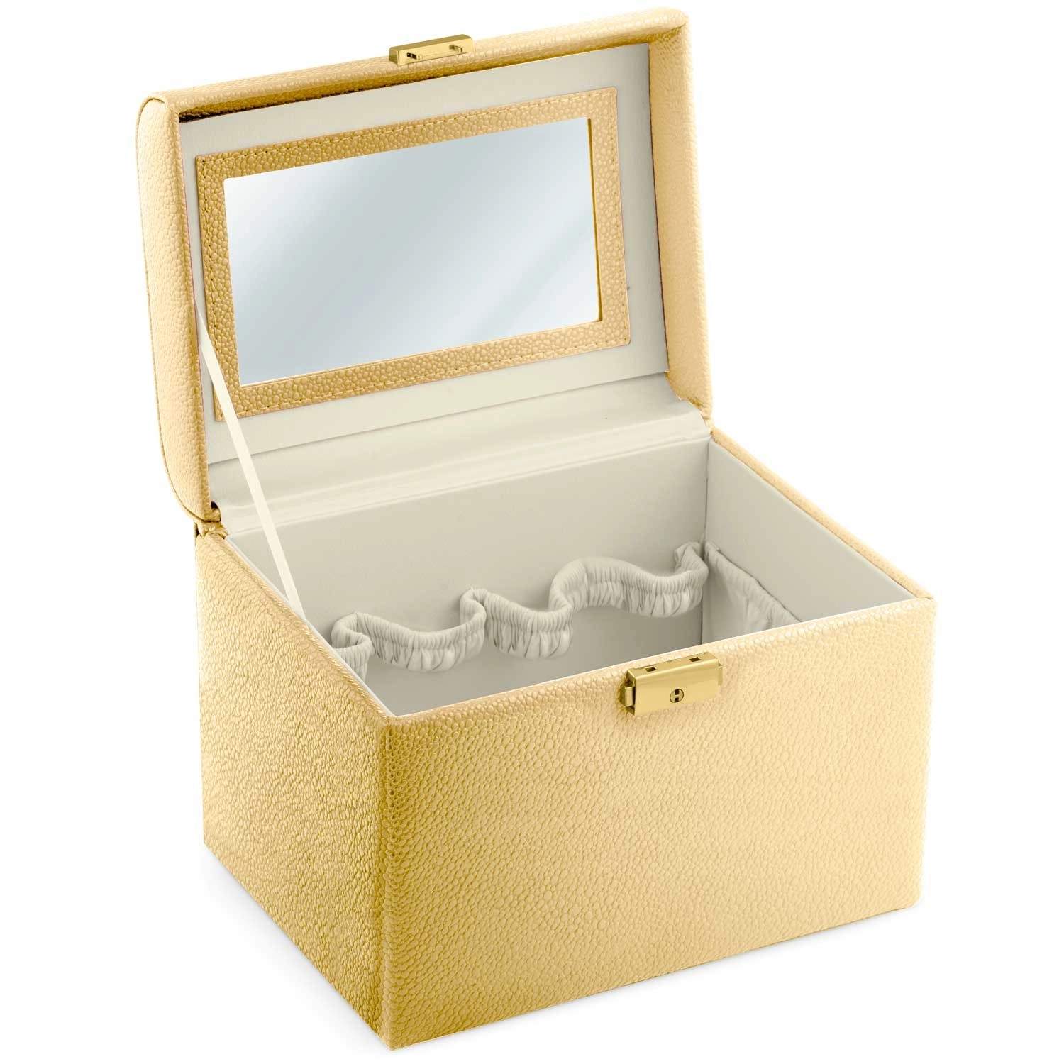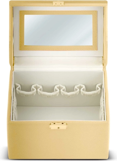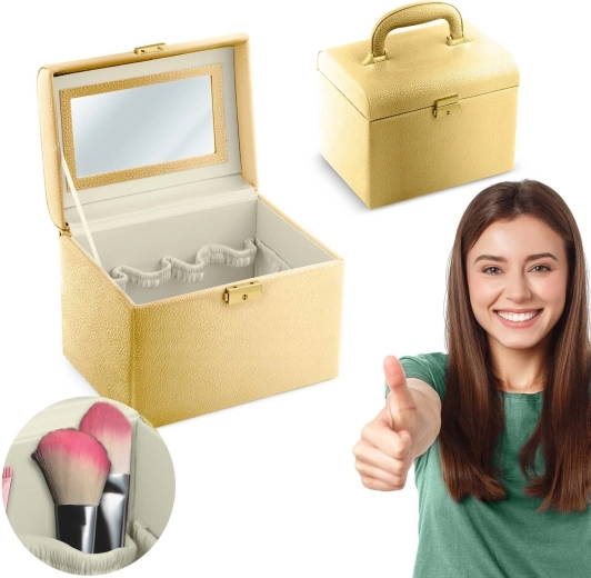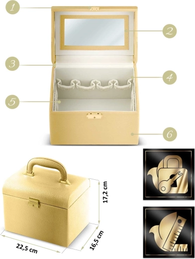 Az arany színű MASSIDO MS-706 kozmetikai táska a stílust, a tartósságot és a maximális praktikusságot ötvözi. Kompakt méretei, 22,5 × 16,5 × 17,2 cm, kényelmesen elférnek a fésülködőasztalon vagy az utazótáskában, mégis meglepően tágas helyet kínálnak kozmetikumoknak, ékszereknek és kiegészítőknek. A beépített tükör és az átlátható belső kialakítás gyors sminkelést és tökéletes rendet biztosít bárhol, bármikor.