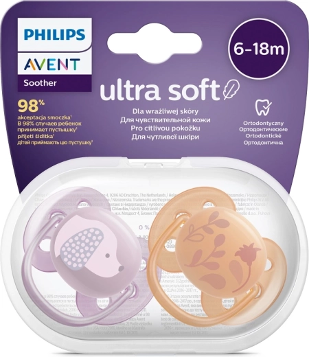 A Philips Avent Ultrasoft Premium az érzékeny bőrű babák számára készült. A rendkívül puha és rugalmas pajzs az arc formájához igazodik, hogy minimalizálja a nyomást és mérsékelje a bőrpírt. Az ortodontikus, szimmetrikus, 100% szilikon cumifej gyengéd, tartós, és a természetes szopóérzetet nyújtja.