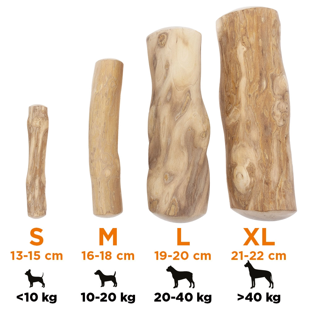 A kávéfa rágópálca ideális választás azoknak a kutyáknak, akik szeretik a hosszan tartó, intenzív rágást. A kávécserje fája jóval keményebb, mint a szokványos erdei fa, miközben rágáskor csak finom fafibrák válnak le, amelyeket a kutya könnyen lenyel és megemészt. Így a rágás nemcsak szórakoztató, hanem természetes módon támogatja a szájhigiéniát, segít csökkenteni a lepedéket és a fogkövet.