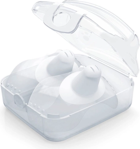 A finoman lapított cumirész precízen kialakított nyílásokkal biztosítja a folyamatos tejáramlást eldugulás nélkül. A bordázott peremeknek köszönhetően a védő stabilan a helyén marad és könnyen kezelhető. A csomagban praktikus tokot talál, amely egyszerű sterilizálásra is alkalmas – ideális otthonra és útközben.
