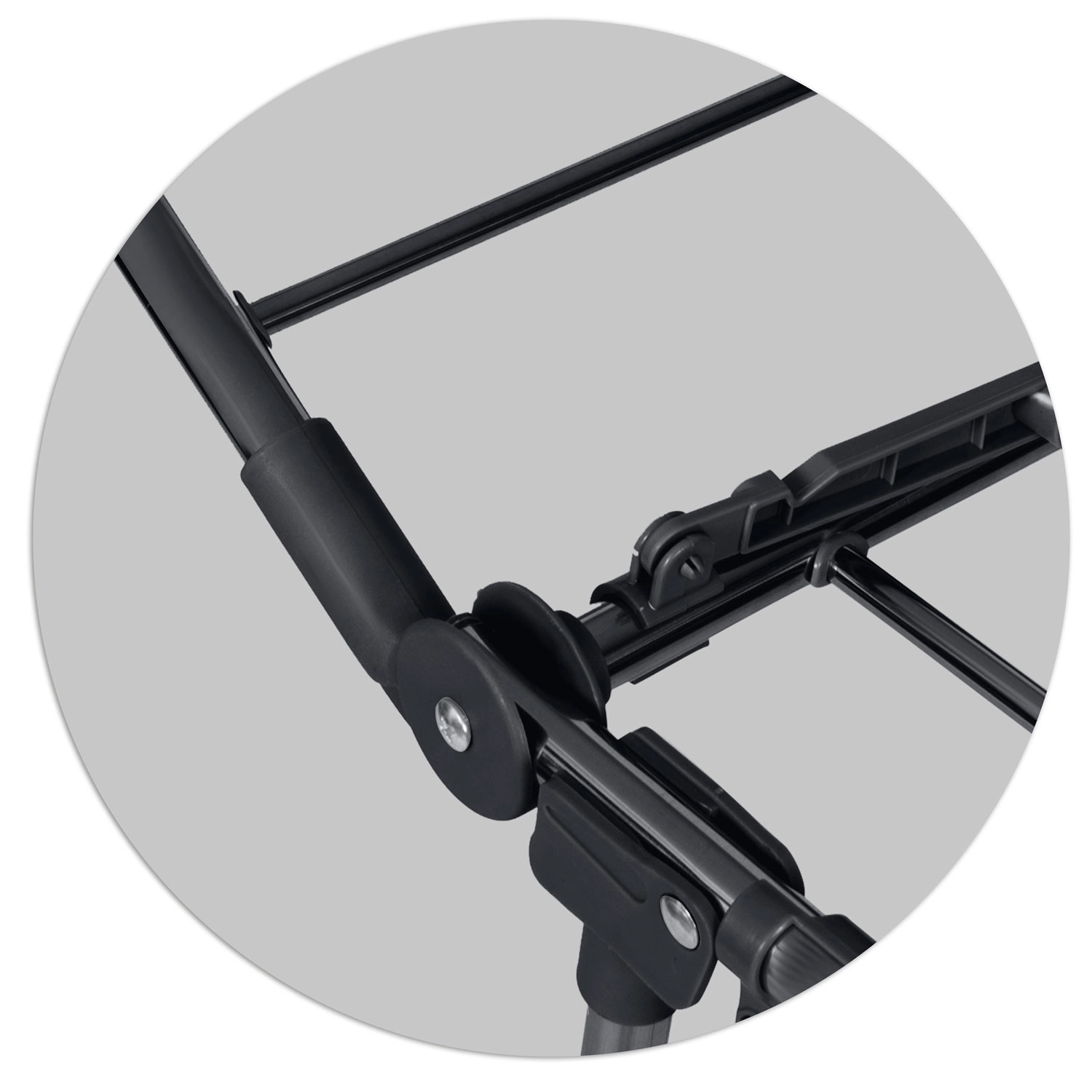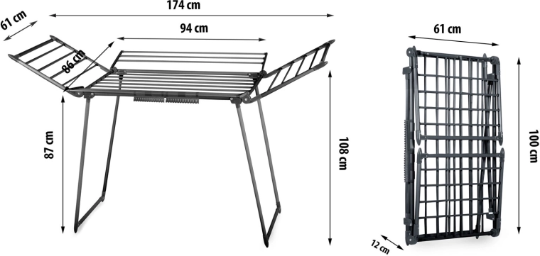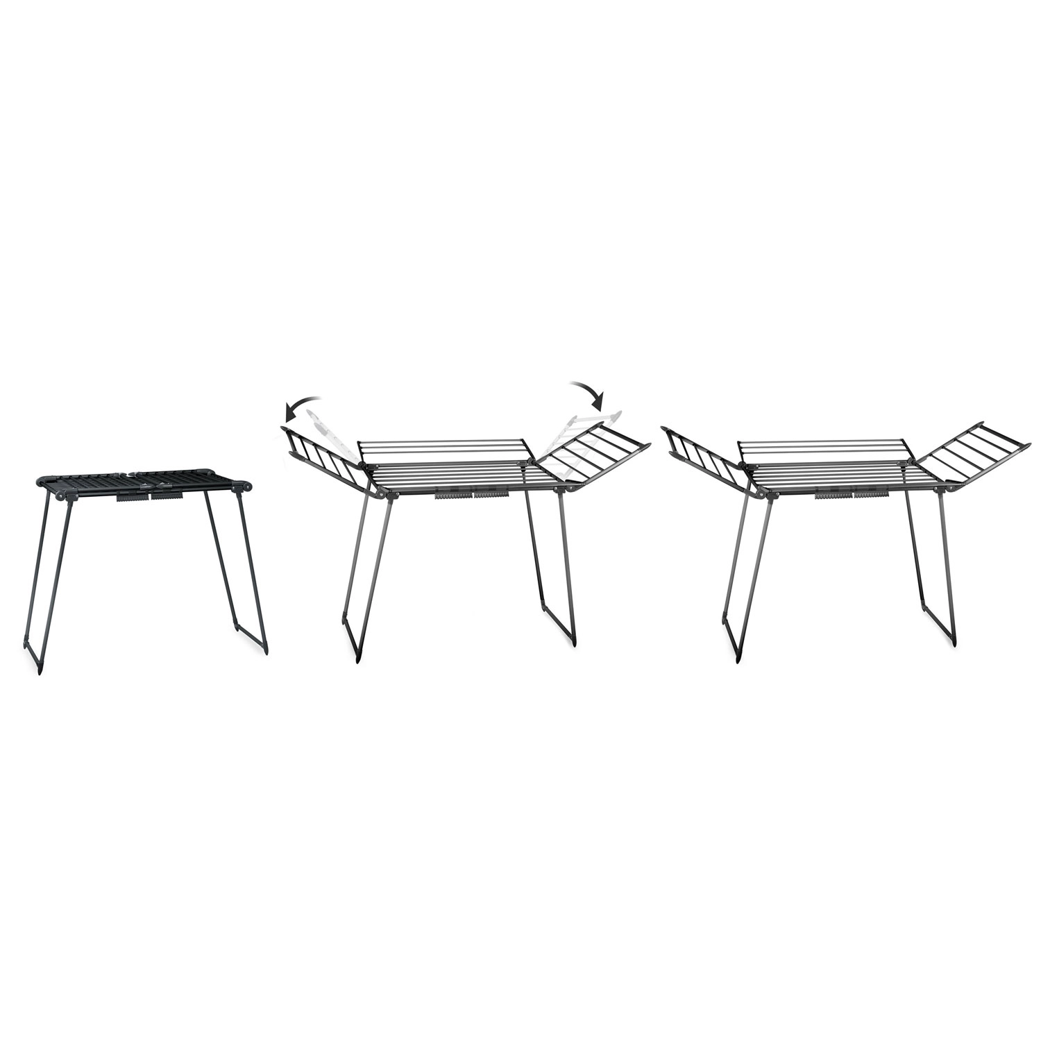 A porszórt acélváz masszív és stabil, mégis a szárító száradás után gyorsan kompakt méretre hajtható a helytakarékosság érdekében.