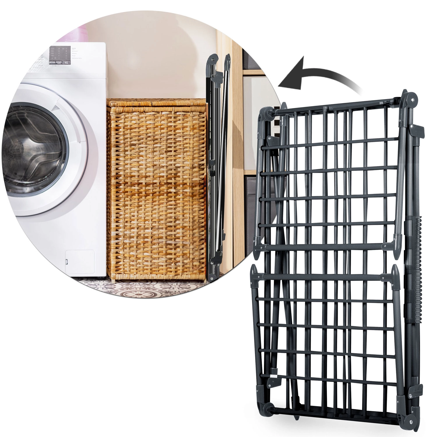 Száradás után a szárítót egyszerűen összehajtja kompakt formára, és elhelyezi a mosógép mellett vagy a szekrényben. Ideális választás azoknak, akik takarékos, kíméletes és hatékony szárítást szeretnének szárítógép használata nélkül.