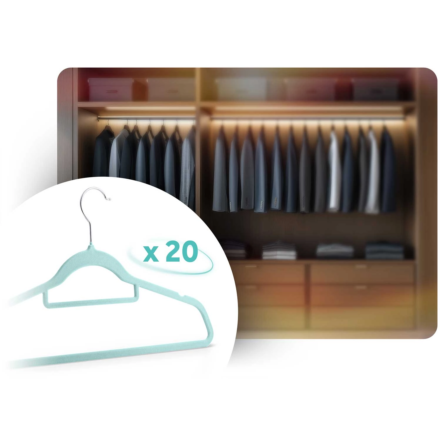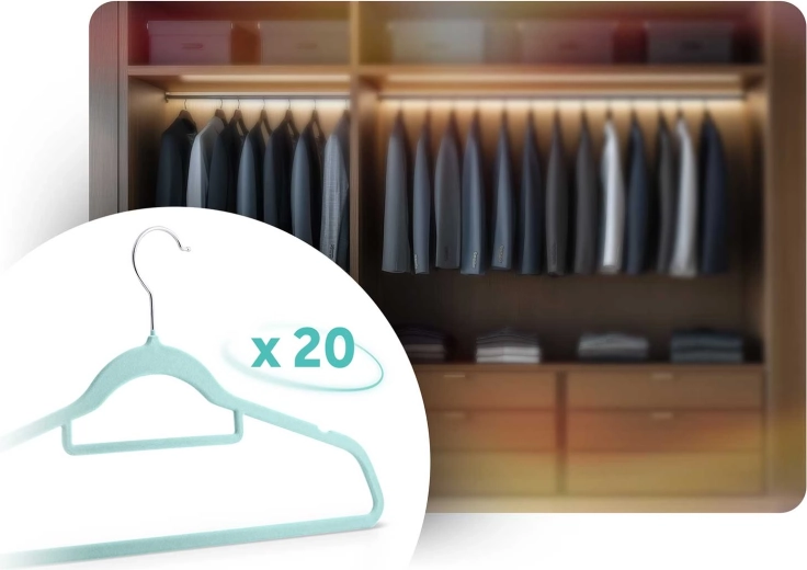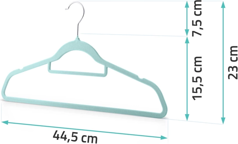 A praktikus és stílusos MASSIDO velúr vállfa szett rendet és kíméletes gondoskodást biztosít a ruháinak. A puha velúr csúszásmentes felületet ad, amely megakadályozza az ingek, ruhák és zakók lecsúszását, míg az erős PP mag tartja a formát, és nehezebb darabok alatt sem hajlik meg.