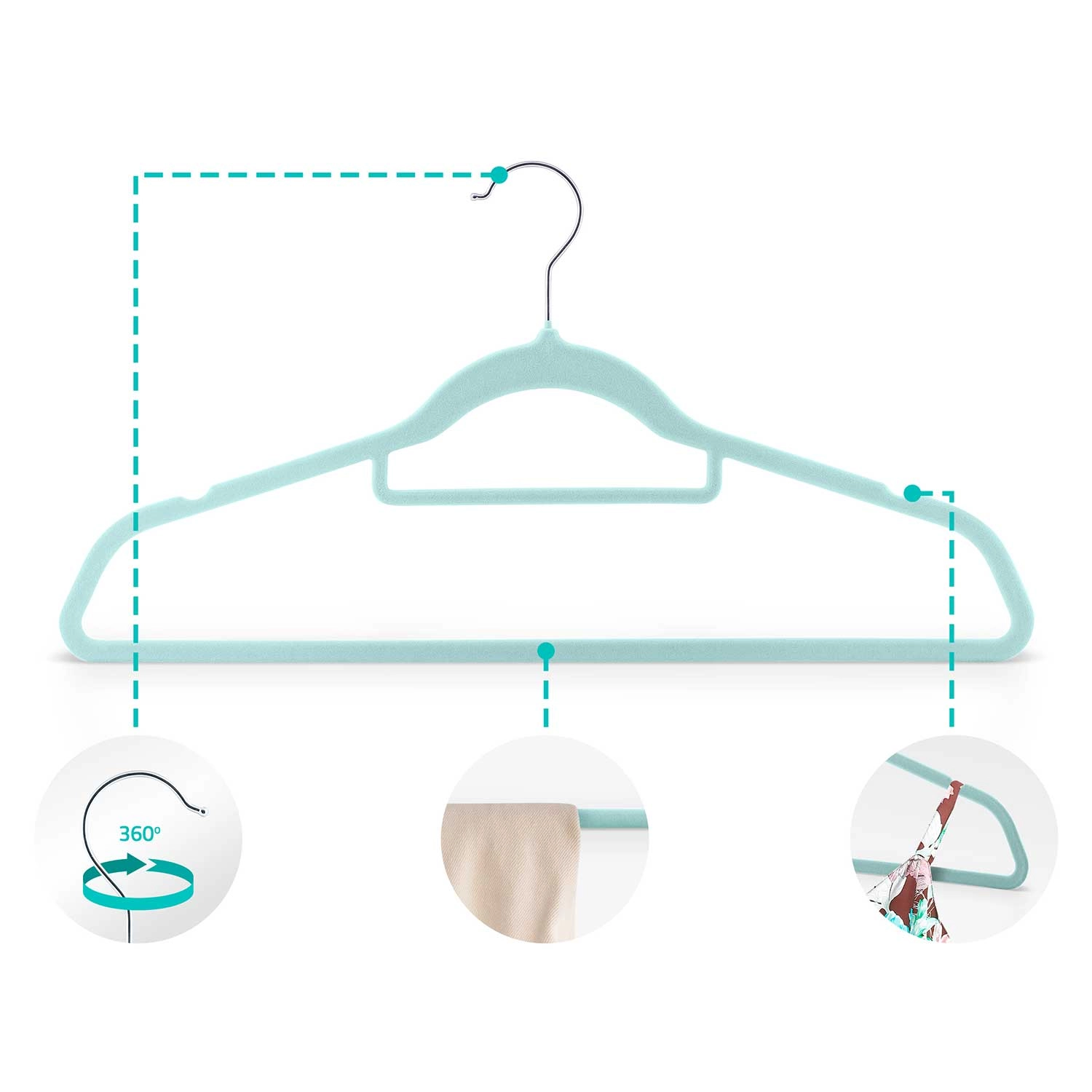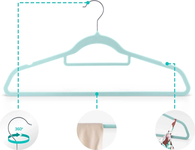 A forgatható fém akasztónak köszönhetően bármelyik irányból könnyen válogathat és akaszthat. Az alsó rúd ideális nadrágokhoz, sálakhoz vagy kendőkhöz, a praktikus bevágások pedig megtartják a ruhák és topok pántjait. A vállfa karcsú teste helyet takarít meg, így több ruhadarabot tárolhat kényelmesen a szekrényben.