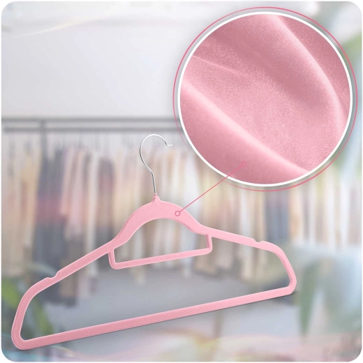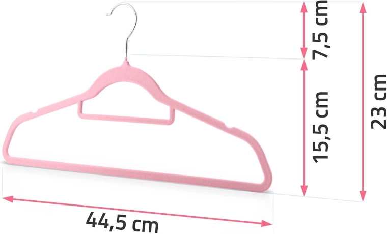 A puha velúr a helyén tartja a ruhákat, és megakadályozza a ruhák, blúzok és pulóverek lecsúszását. Ideális finom anyagokhoz és sima felületű öltözékekhez.