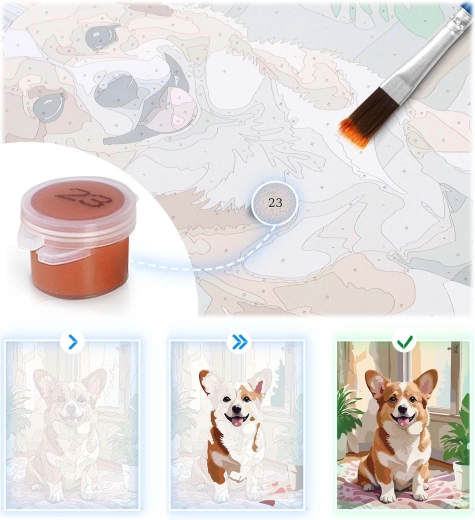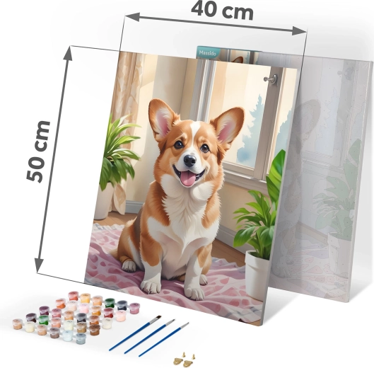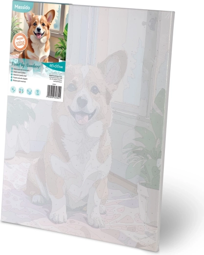 A Massido számozott kifestő készlete a bájos CORGI kutyus motívummal remek választás relaxációhoz, kreatív kikapcsolódáshoz és közös családi pillanatokhoz. Alapja a minőségi vászon fa kereten (feszítőkereten) előnyomott területekkel és számokkal, amelyek pontosan megfelelnek a csomagban található festékeknek. A intenzív, jól fedő akriloknak köszönhetően telt színeket és gyönyörű végeredményt érhet el előzetes tapasztalat nélkül is.