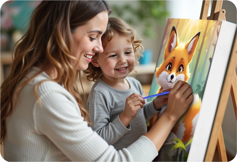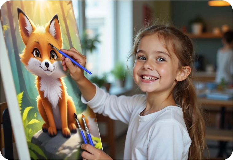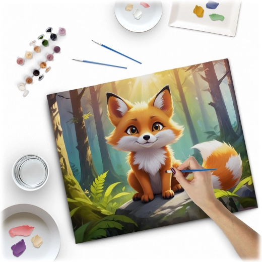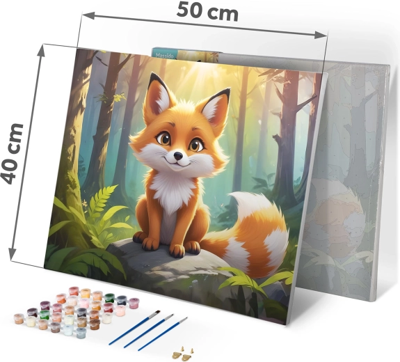 Fedezze fel az alkotás örömét a 40 × 50 cm-es, számozott kifestő kreatív szettel, bájos róka motívummal. Előnyomott vászon kereten, 30 fedő akrilfesték, 3 ecset és akasztók – minden, amire szüksége van egy gyönyörű kép elkészítéséhez, még kezdőként is.