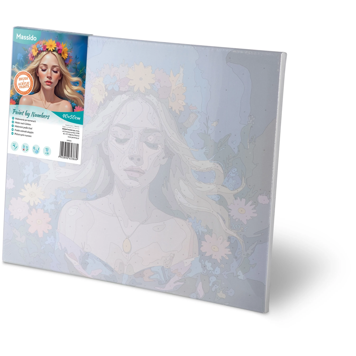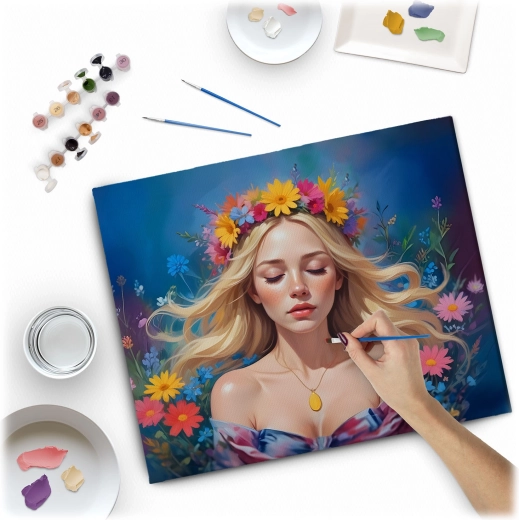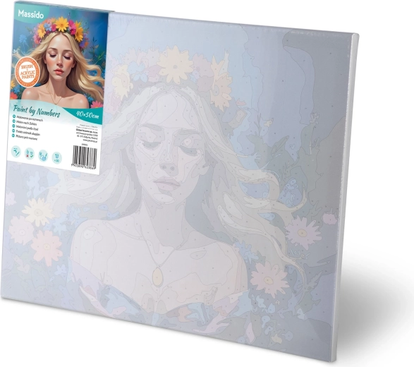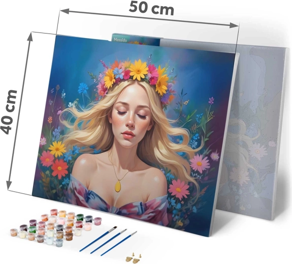 Előrenyomott vászon kereten, 30 akrilfesték, 3 ecset és akasztók. Nyissa ki a csomagot, és kezdjen alkotni további beszerzés nélkül.